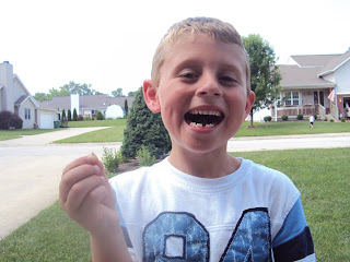 Josiah has had this loose tooth for months and he really wanted it to fall out while he was at school so he could put it in a little treasure box and it fell out at school yesterday. He was so excited to show me when he got home! So, of course he put it under his pillow last night and this morning came running in our room, "I got money, I got money from the tooth-fairy! Wow! I can't believe it! The tooth-fairy IS real!" It was so cute!!!!!